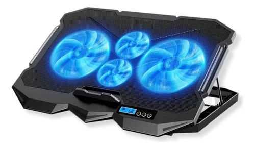 Suporte de resfriamento de alto desempenho para laptop, projetado para fornecer ângulos de visão ideais. Ajustável em altura em até 7 posições, com baixos níveis de ruído e diferentes modos de iluminação.