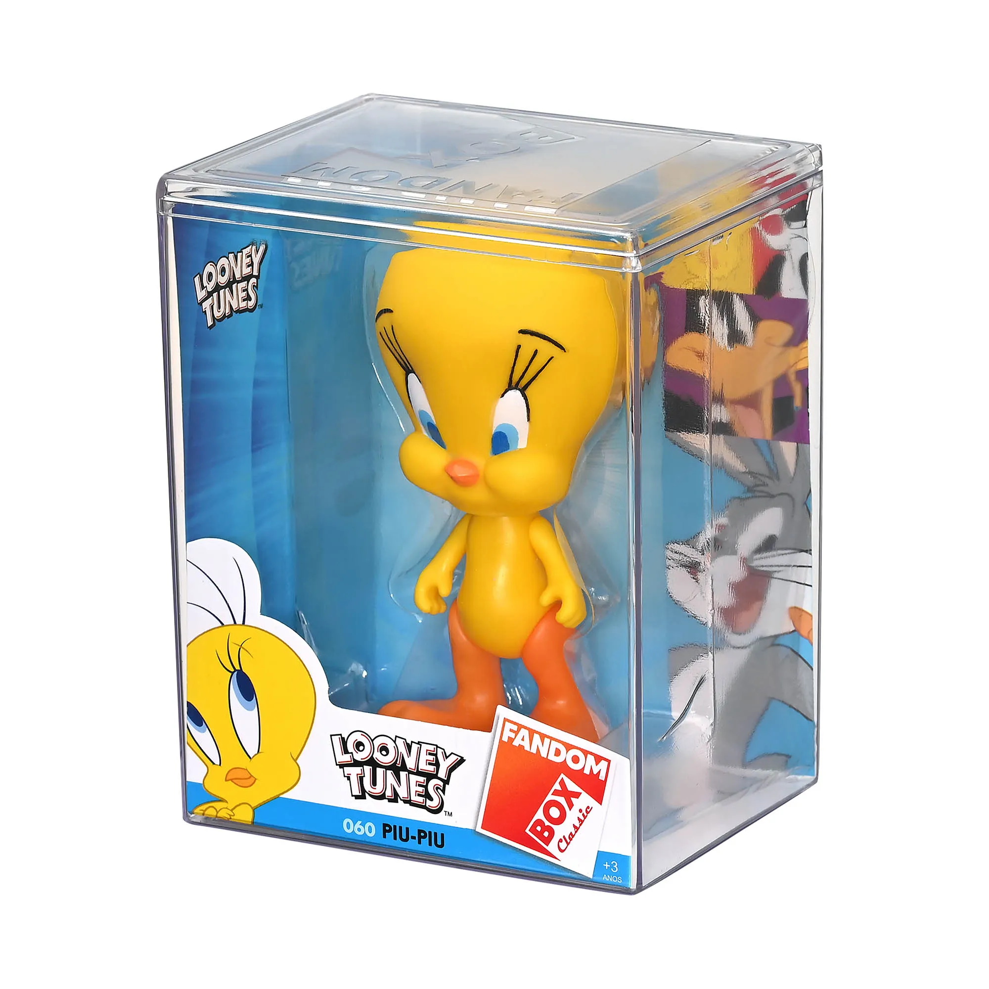 O quê que há velhinho? Isso mesmo! Os personagens doLooney Tunes chegam ao universo do Fandom Box Classic nos lembrando que todos temos um lado fã para nos orgulhar. Com características fiéis aos 5 principais personagens da animação, essa coleção é fabricada totalmente no Brasil e conta com articulações nos bonecos. Para tornar sua experiência ainda mais especial, o produto vem em uma embalagem transparente exclusiva (a box), permitindo proteger e expor toda a beleza do produto.