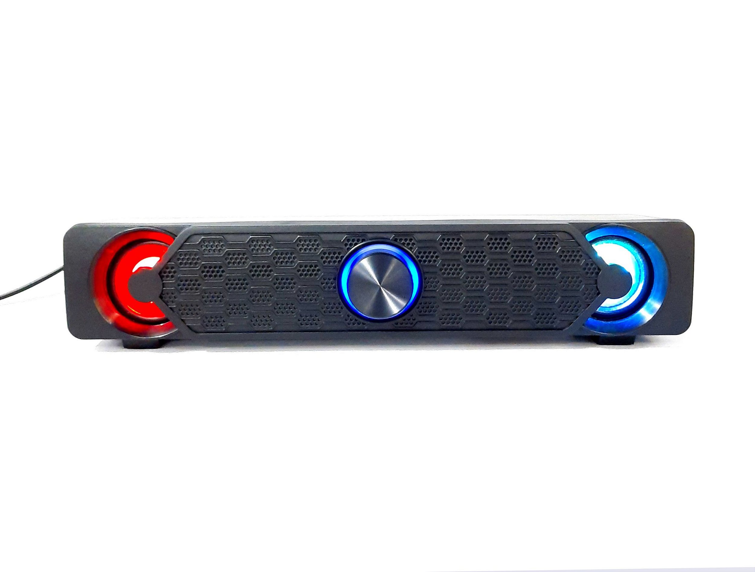 A alimentação da caixa de som é por cabo USB integrado, que pode ser ligado direto a conexão USB da TV ou PC.