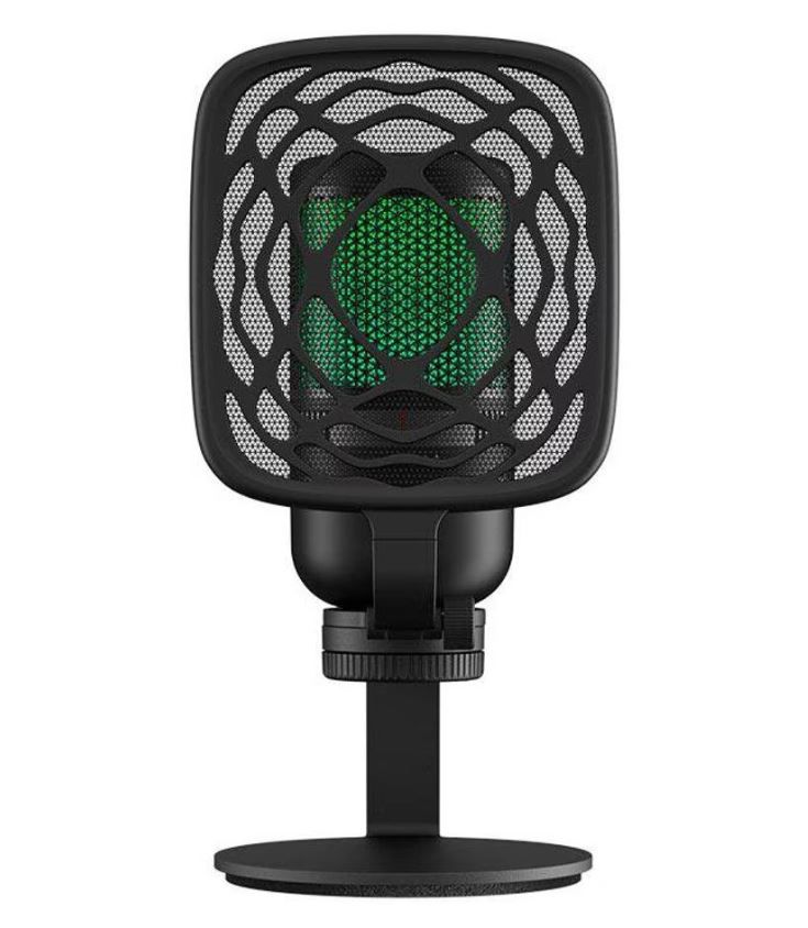 Seu design possui uma trama vazada com iluminação interna, trazendo um visual diferenciado. Você pode alternar o status do microfone tocando no botão touch na parte superior do microfone, tornando o ligar e desligar muito mais prático e intuitivo.