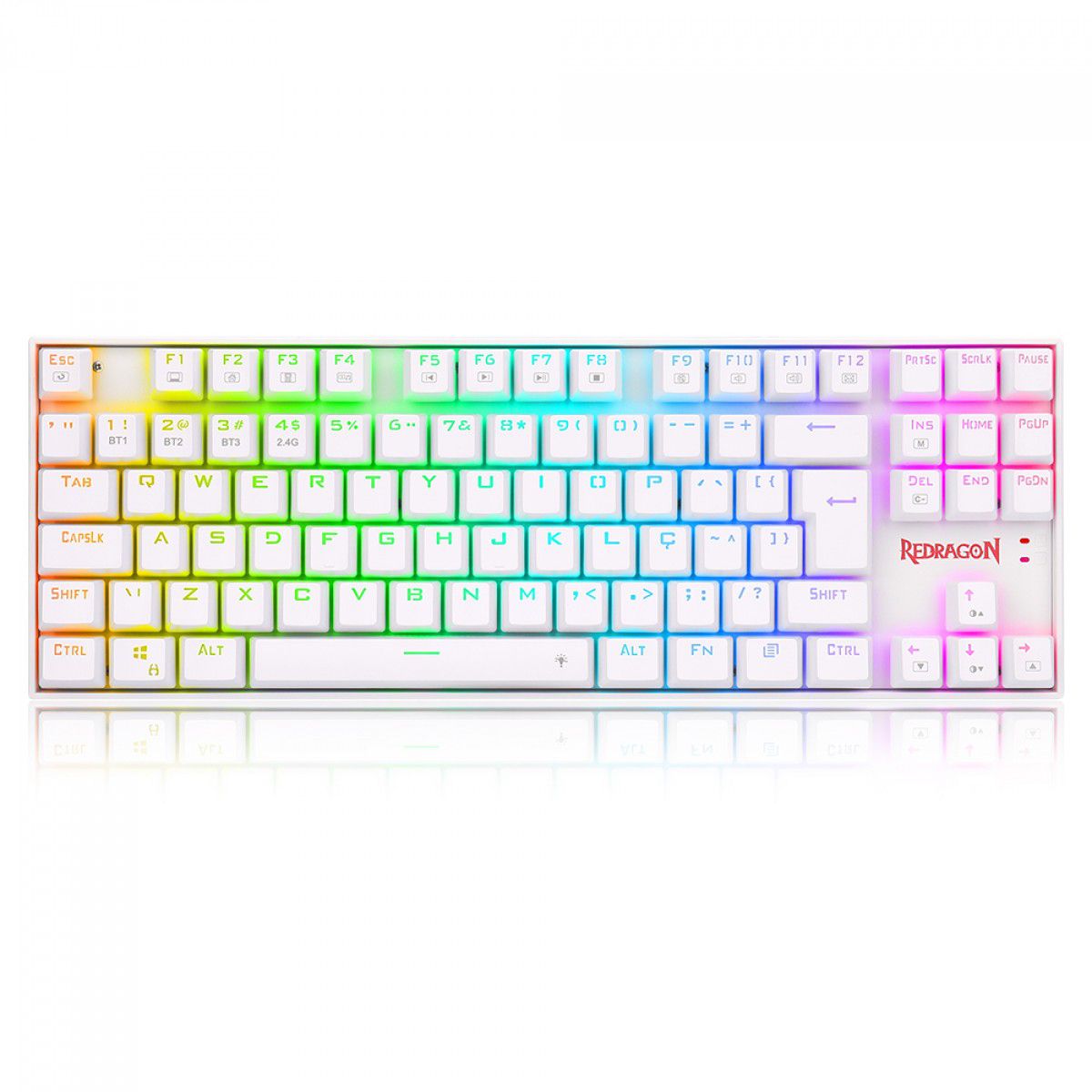 Teclado Gamer Mecânico Redragon Kumara Pro Wireless, Bluetooth, Bateria Recarregável, RGB, Switch Blue, Branco